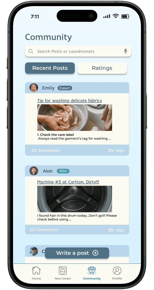 Public self-service laundromats provide a more convenient way for users without washing machines—such as students, tenants, travelers, and pet owners—to manage their daily laundry needs. However, long-term use has also revealed a series of recurring issues: the lack of transparency around machine hygiene, abandoned laundry leading to machine occupancy and waiting, communication that relies on offline or handwritten notices, and maintenance and cleaning tasks that are often handled only after problems occur rather than through timely response. These issues not only affect the user experience but also increase the management burden for shop owners, cleaners, and repair staff.