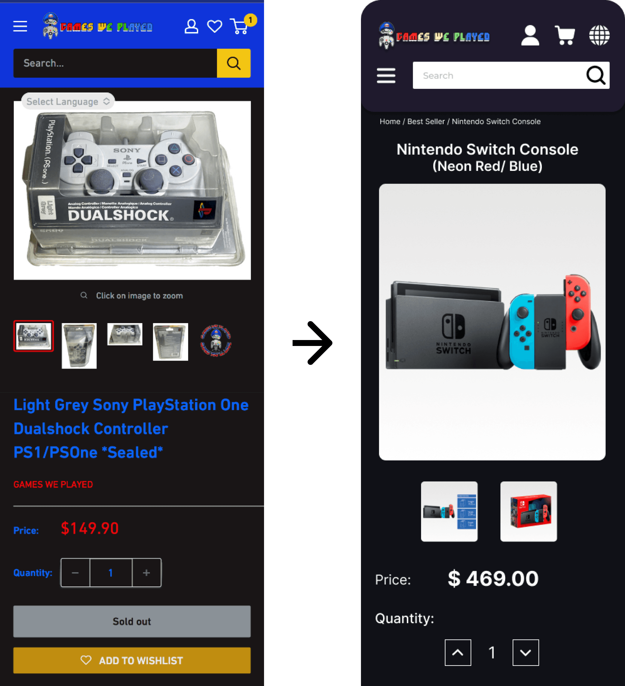 This project focused on the UI redesign of a retro gaming e-commerce website, covering the core purchase journey across desktop and mobile platforms.
